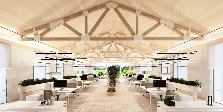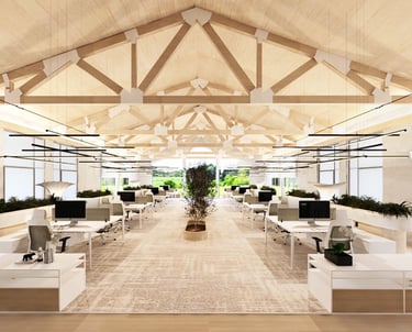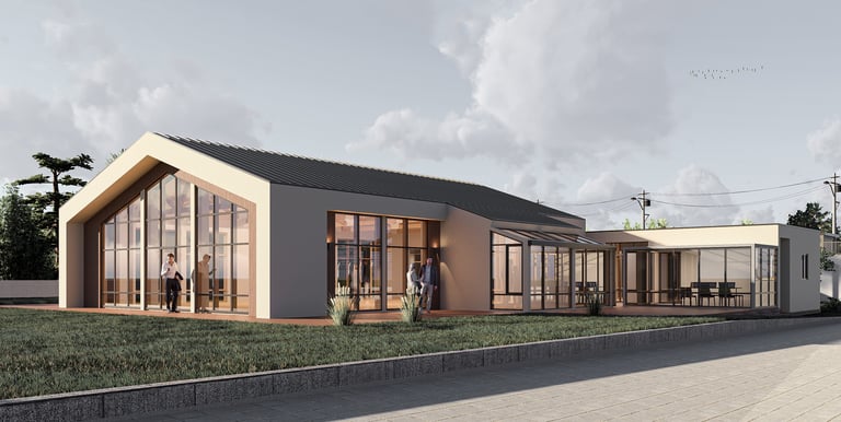 The Koztek Office Building project, located in the central area of Urla, is shaped by a large gable-roofed open office mass, with 11 modular wooden container units behind it that house different architectural functions. The 11 wooden containers used in the structure were designed to be pre-manufactured in a factory environment, and functions that do not require large volumes, such as meeting rooms, rest areas, wet areas, and technical spaces, were planned in this section of the building. The structural and architectural elements of the building were designed to reflect the maximum use of natural wood. By integrating structural wooden elements into the interior design, the goal was to create a spatial experience that is in harmony with nature.