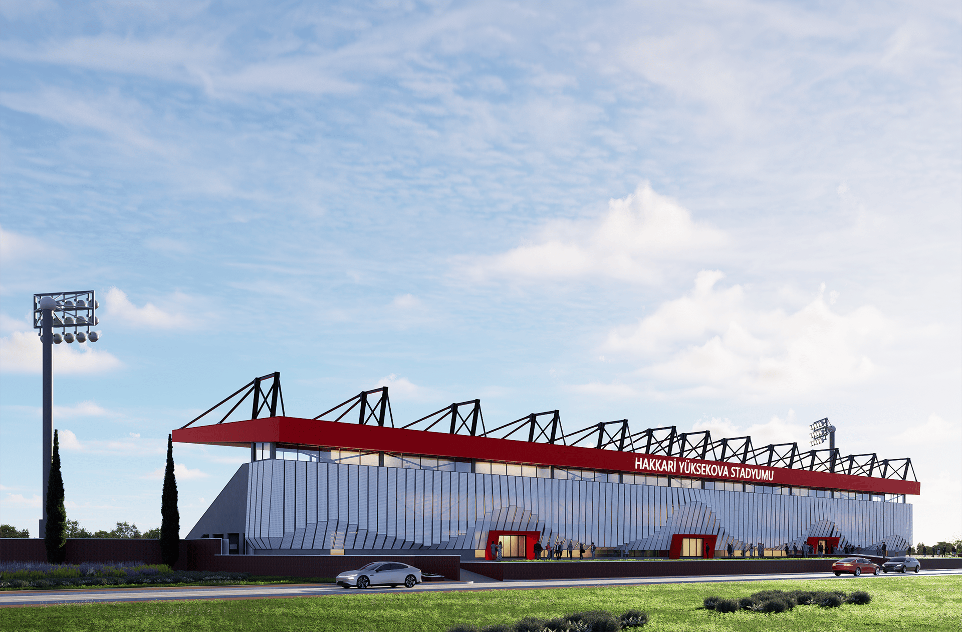 The stadium project consists of two stands, each with a capacity of 2,500 spectators, positioned along the east and west axes, resulting in a total seating capacity of 5,000. The circulation scheme has been designed by separating spectator, athlete, and staff movements, with controlled access points for entrances and exits. Beneath the stands, locker rooms, technical spaces, and service units for spectators are accommodated.