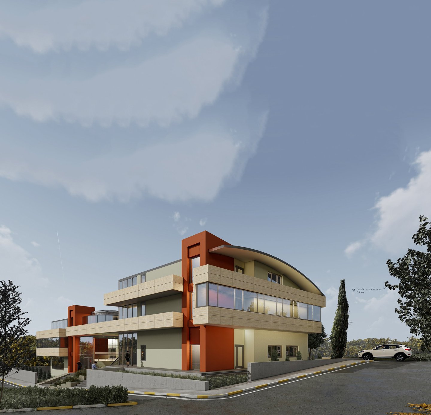 Medikal cihaz imalat, depolama ve ihracat ihtiyaçlarına odaklanarak üretilen yapıda, bu sorunların tamamına çözüm planlanmıştır. Açık ofis plan tipinde düzenlenen üst katlar, zamanın değişken ihtiyaçlarını karşılayacak şekilde sürdürülebilir olarak kullanıcı yorumuna açık bırakılmıştır. Yapılar arasında kalan alanda personel, idari kadro ve misafirler için yarı açık sosyal alanlar tasarlanmıştır. Bu bölümde kurumsal dayanışma kültürünü artıracak etkinliklere elverişli mekanlar bulunmaktadır. Yatay ve düşey sirkülasyon alanları; üretim-depolama-transfer süreci için optimum şekilde tasarlanmıştır.
